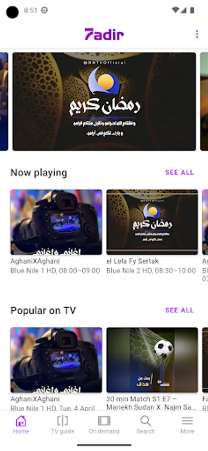 Welcome to 7adir, your premium platform for a wide variety of the best Sudanese content, with the largest Sudanese content library , exclusive series including aghani and aghani & your favorite TV shows, live TV, Sports and more.