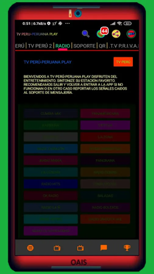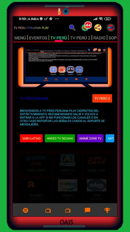 Welcome to Tv Peru - Peruana Play enjoy training, your favorite channels on your Android smartphone, Tablet and Tv Box. We have varieties of open signal Peruvian channels. You can also tune in to the radio station, listen to your favorite stations.
