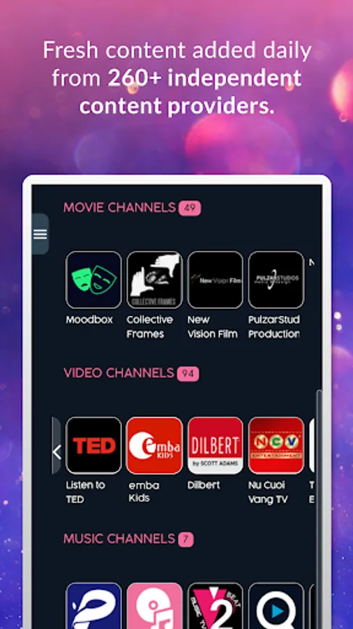 Our ever-expanding channel lineup from third-party content providers ensures a continuous stream of fresh content. With Pzaz, you’ll never be wanting for remarkable television again.