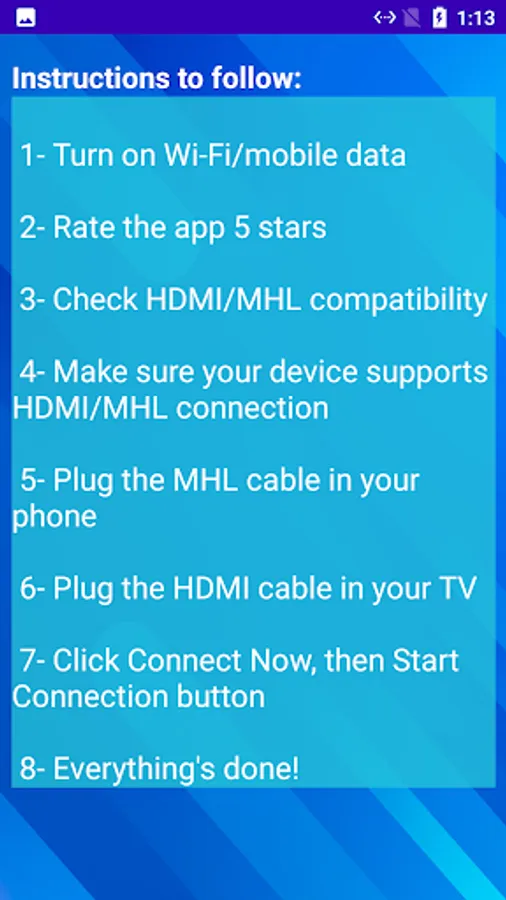 Phone connect to tv (HDMI connector) is known as screen mirroring for all tv without wifi and HDMI/MHL connect app which helps you HDMI connect to tv USB, tablet, or PC to the large TV screen in high picture quality, real-time response, and stability. And you can also play your phone's video, music, or picture on the TV set with this phone connect to tv app.