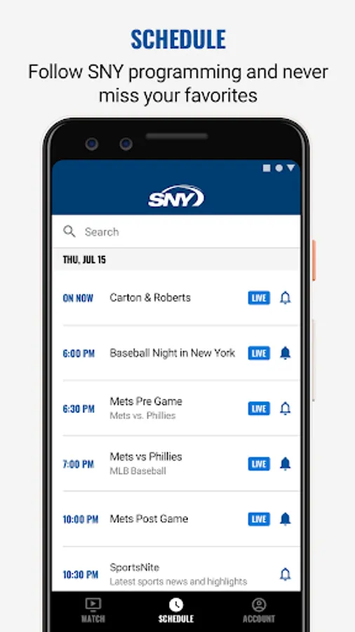 Download the SNY app to access live games, the latest NY sports news, original and archived shows, insider takes, events and more.