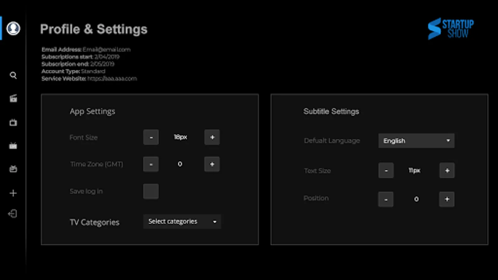 With Startup Show, you can add all of your favorite m3u playlists using our sleek-designed powerful built-in player.
