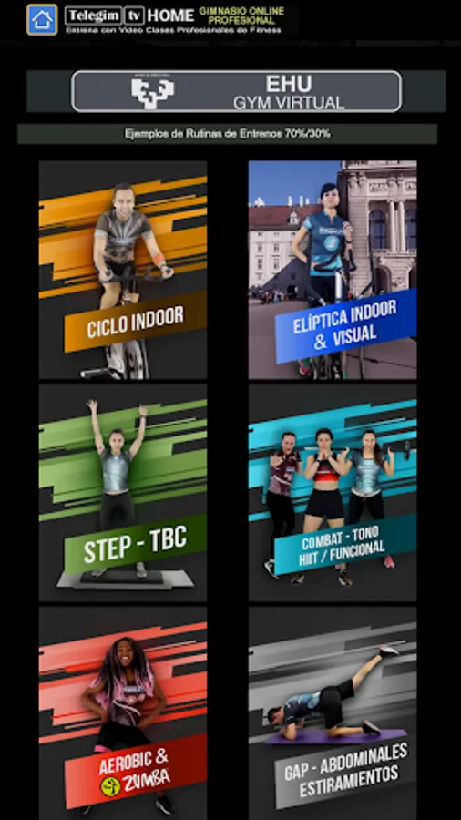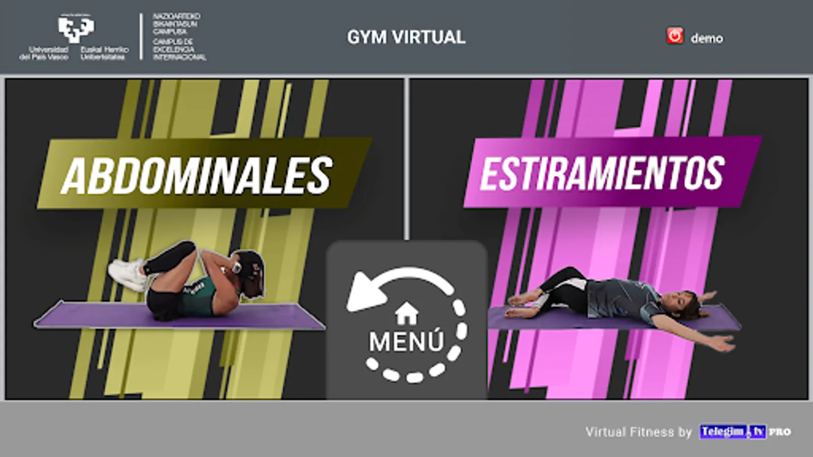 Application that, like the web version, allows you to stay in shape thanks to watching video fitness classes carried out by the best trainers. The objective of this "EHU-GYM VIRTUAL" tool is to offer you to take care of your health by doing physical activity whenever you want. We want to be "close to you" and make it easy for you. That's why we put at your disposal for free this app where you will find every day (Monday to Sunday) 15 sports activities: ABDOMINALS, AEROBIC (2 modalities), SPINING (Indoor cycle in Spanish and Basque), COMBAT, STRETCHING, FUNCTIONAL HIIT , GAP, MEDITATION, PILATES, TAICHI, TBC (Total Body Conditioning), TONING and YOGA. For each sport modality you will have a lot of sessions. Choose the one you like the most. Being at home, in residence, does not mean leading a sedentary life, work on healthy lifestyle habits and get active. It is accessible only by members of the UPV/EHU university community. To obtain your personal access codes you must register and fill out the form that appears on the website https://www.ehu.eus/es/web/ehukirola/activity-fisico-deportiva-online