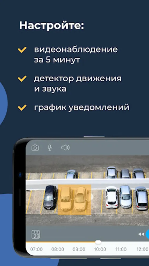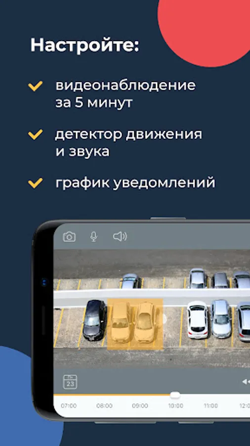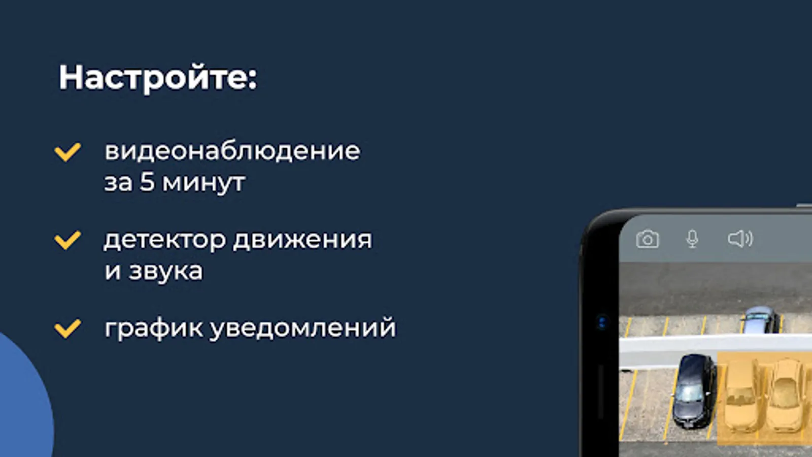 - The system detects movement and loud sounds in the house, immediately starts recording and sends push notifications to your smartphone.