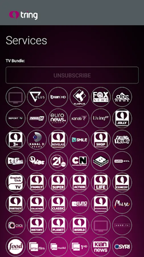 - 30 kanale tematike Tring, të konceptuara enkas për të gjithë kategoritë e shikuesve dhe mbi 120 kanale shqiptare dhe ndërkombëtare.