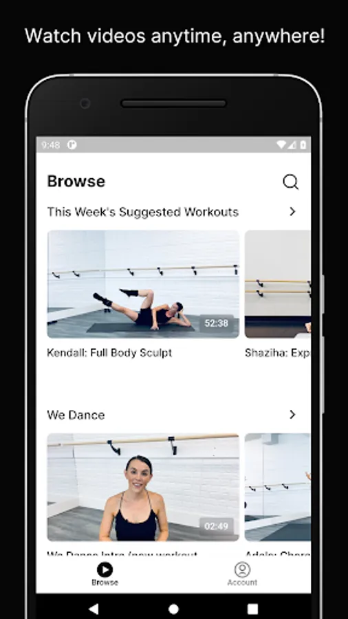 -Variety of styles including Barre, Sculpt, Pilates, Booty Building, Cardio Dance, Yoga, HIIT, Ballet, Strength Training.