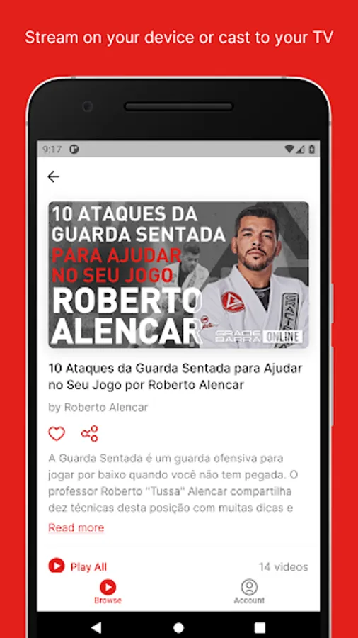 Our platform also offers free courses and training with the biggest names in Jiu-Jitsu and Gracie Barra. You can access these courses right now and train with Gabriel Arges, Felipe Penna, Fabiana Borges, among others. There are over 100 lessons and videos available to you.