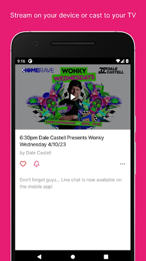 This app is a chat and dance platform created by DJ's for the clubbers with daily live shows and thousands of hours of ever growing catch up content from across all genres of music…