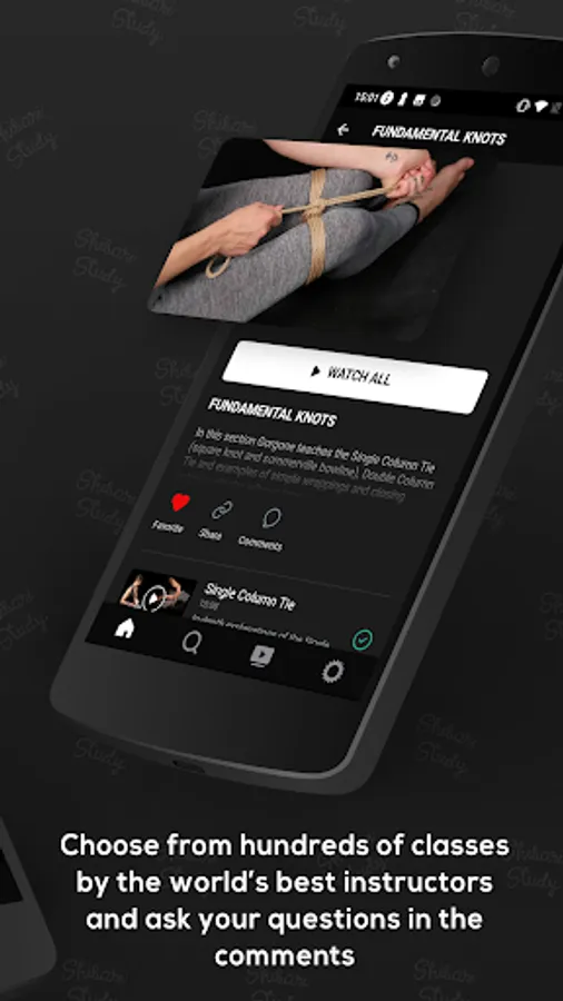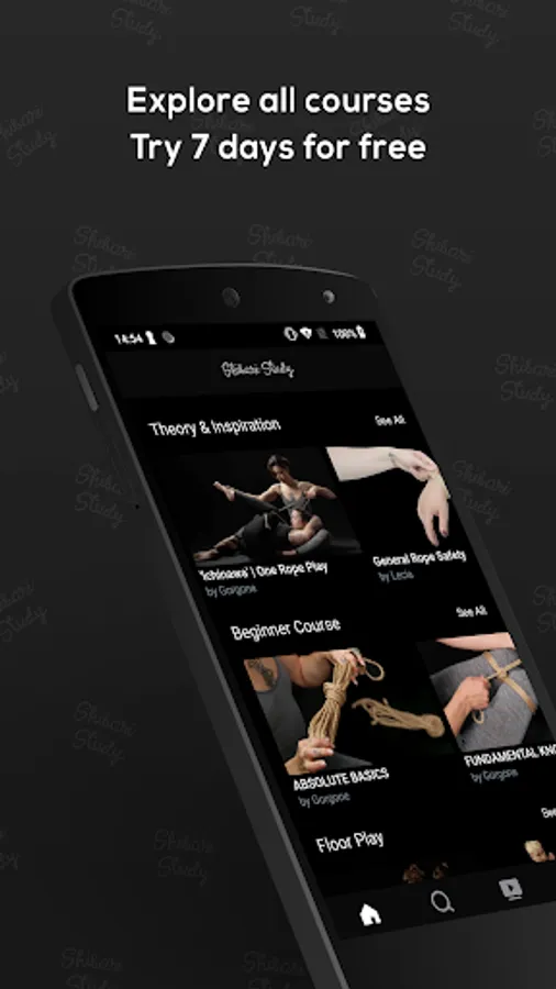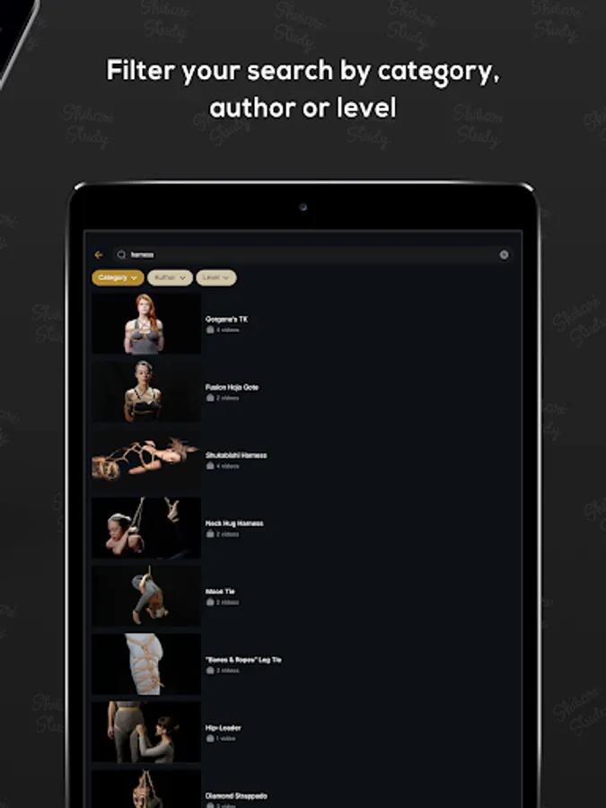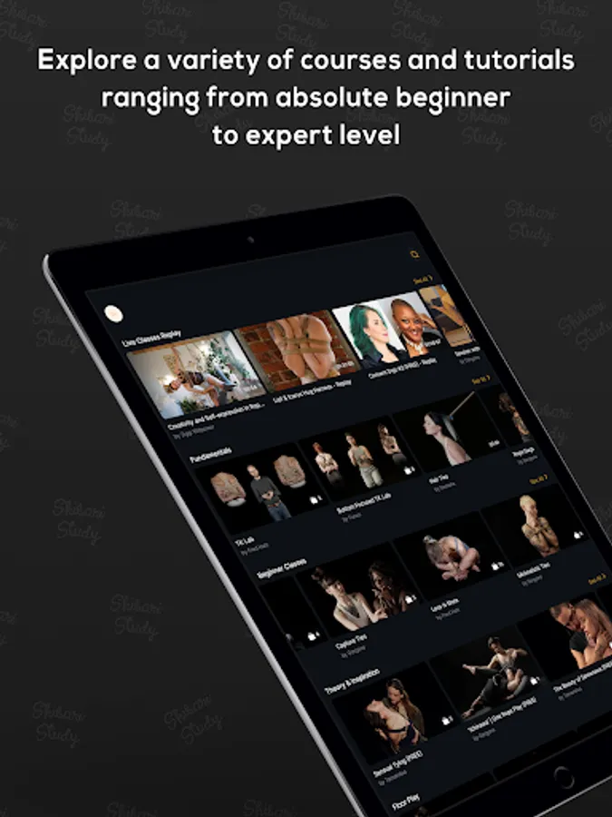With an ever-growing library of step-by-step tutorials, weekly streamed classes and diverse educational content for partnered tying as well as solo learning, we’ll take you from mastering fundamental skills to tying intricate patterns, rope harnesses and more. And with offline functionality, you can explore the world of shibari at your own pace, wherever you go.