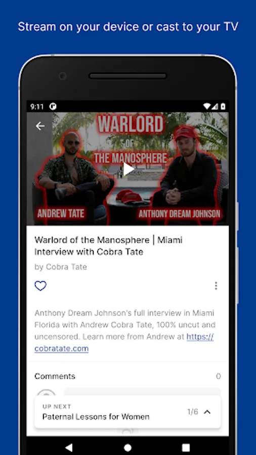 Install the app now to play audio while your phone is locked, download videos for offline viewing, and start your free 30 day trial.