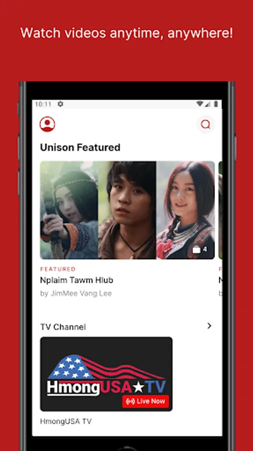 We are the #1 Hmong media streaming service. We have content from around the world, such as United States, Laos, Thailand, China, and Vietnam. Watch all your childhood favorites to new exclusive Unison releases from the comfort of your home or everywhere you go on your mobile phone.