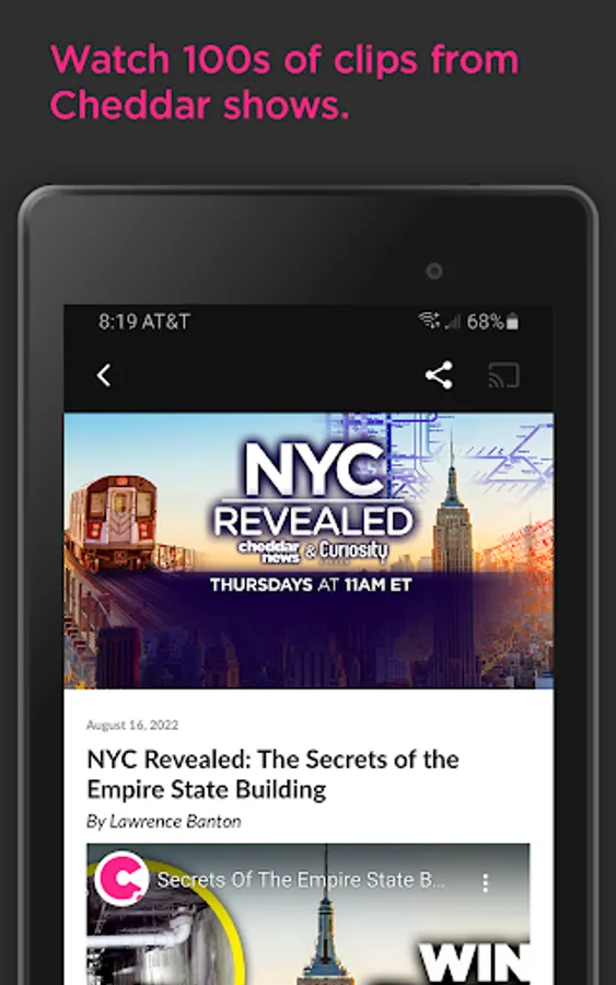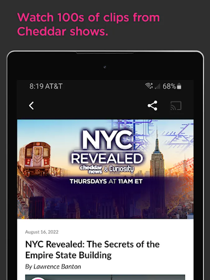 Get access to Cheddar videos and live streams, right on your phone or tablet.