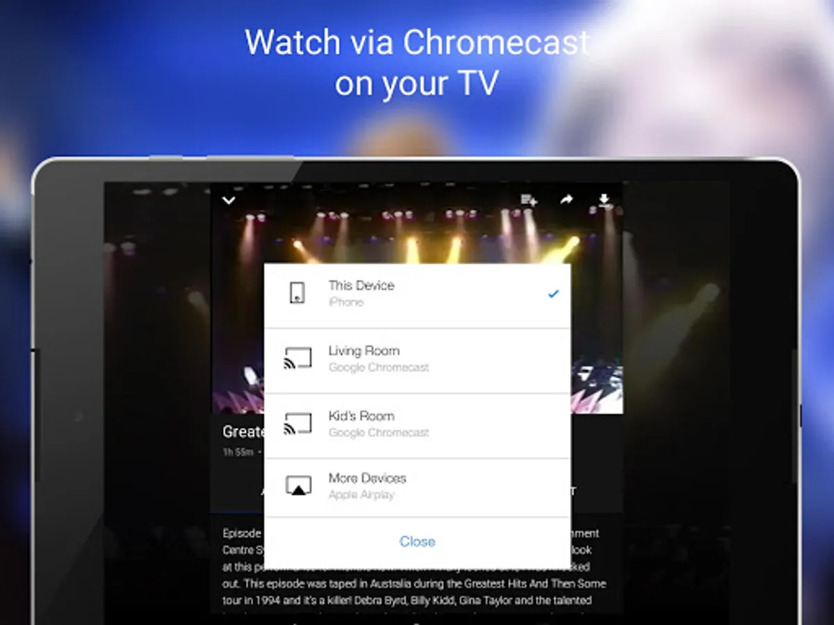 • Automatically beam videos from your phone to your Chromecast enabled devices