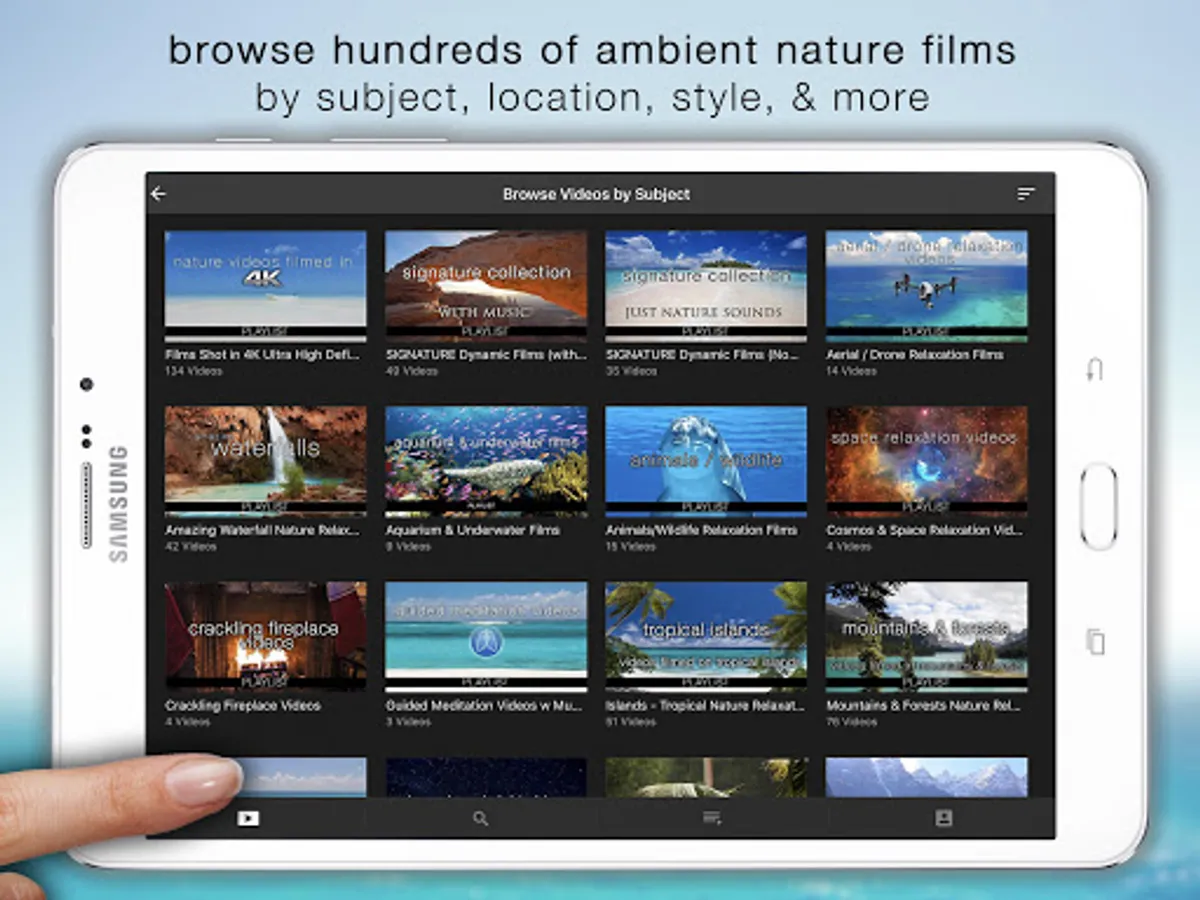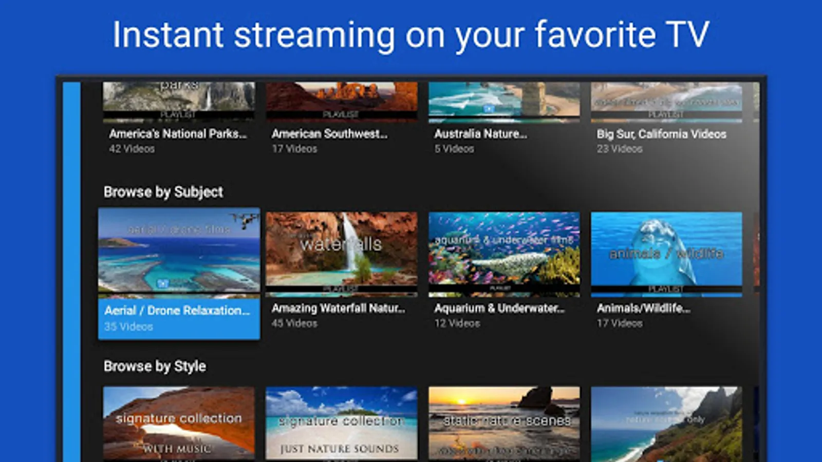 Nature Relaxation™ On-Demand for Android/AndroidTV is a premium niche video app offering instant watermark & advertisement-free access to HUNDREDS of stunning ambient nature films direct from the producer David Huting. From soaring over majestic mountaintops in Patagonia to swimming underwater with dolphins in Tahiti, the expansive Nature Relaxation™ film library is your ticket to experiencing the world's most famous and hidden natural wonders in 4K UHD & HD 1080p.