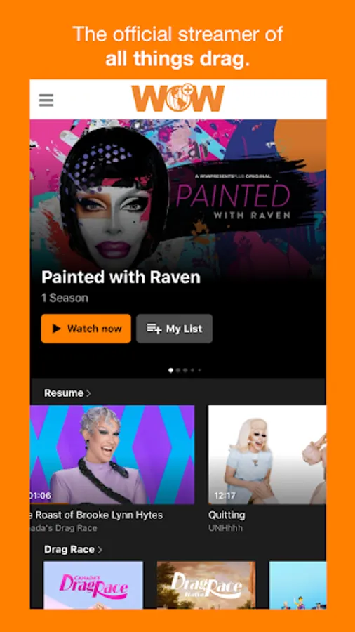 WOW Presents Plus is the only streaming service featuring multiple Drag Race franchises, Painted with Raven, Werq The World, UNHhhh with Trixie and Katya, and hundreds of other World of Wonder originals, documentaries, specials, and LGBTQ+ programming, all ad free.