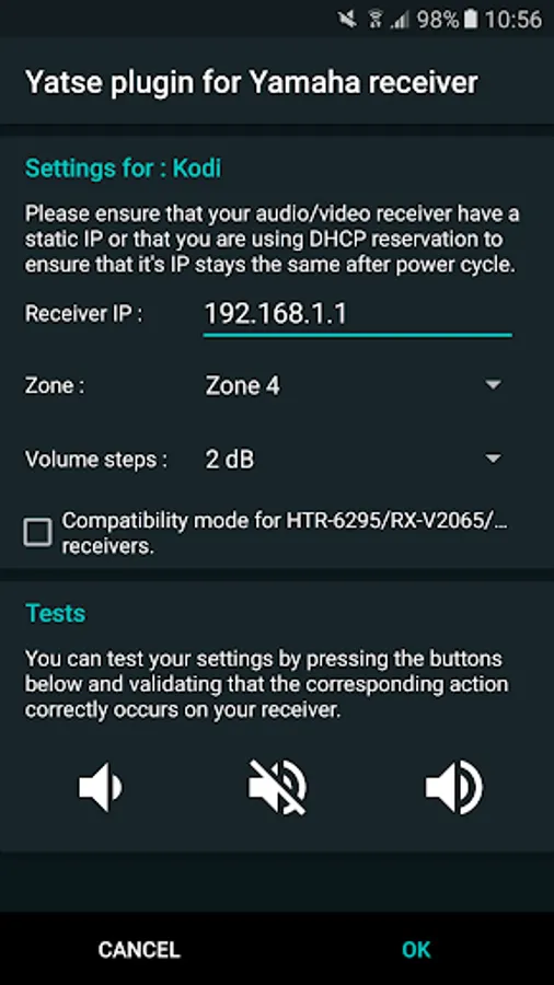 When this application is installed, you can activate this plugin for any of your Media Center and directly manage volume of your network connected Yamaha receiver from Yatse.