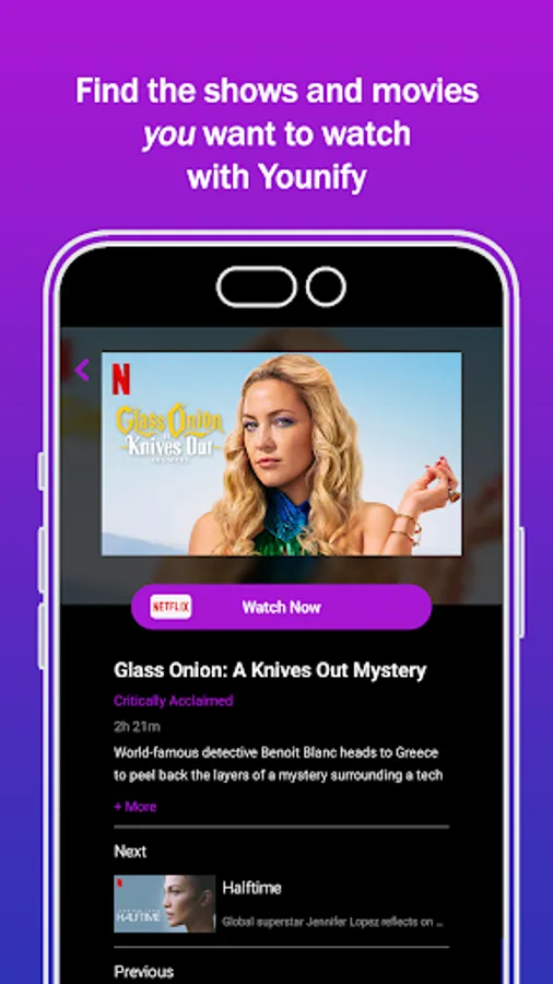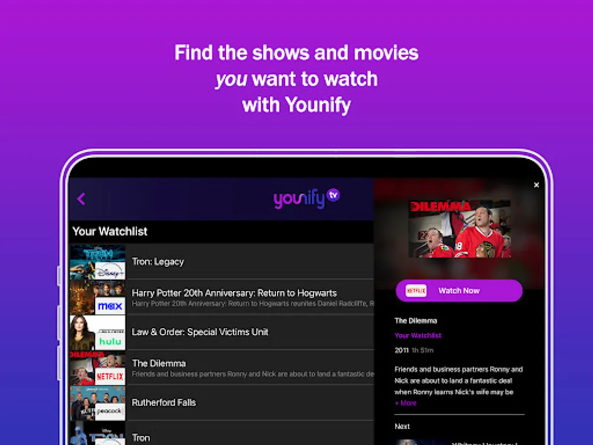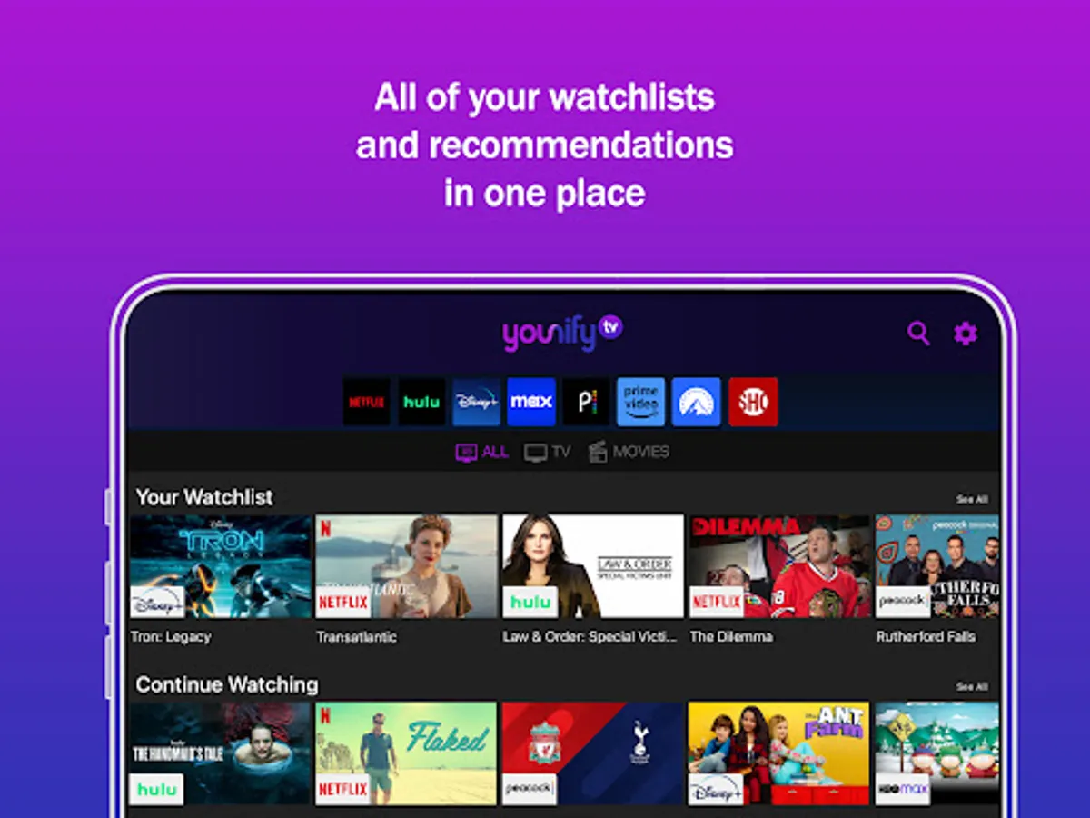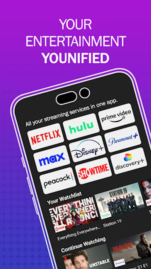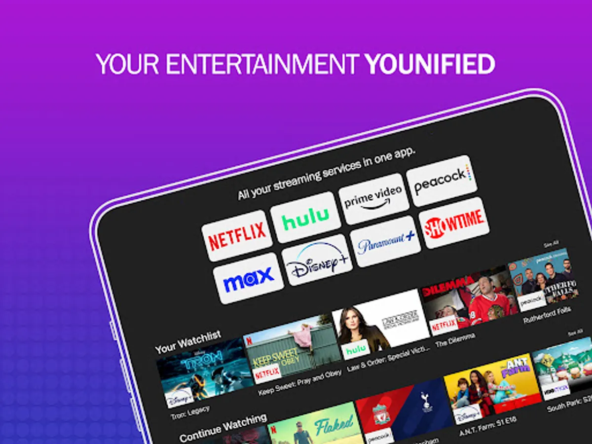 Younify is a universal personalized streaming guide and search engine across all your streaming services. All of your watchlists and recommendations in one place. Search across your streaming services to find any show or movie. Find the shows and movies you want to watch with Younify. Your entertainment, Younified.