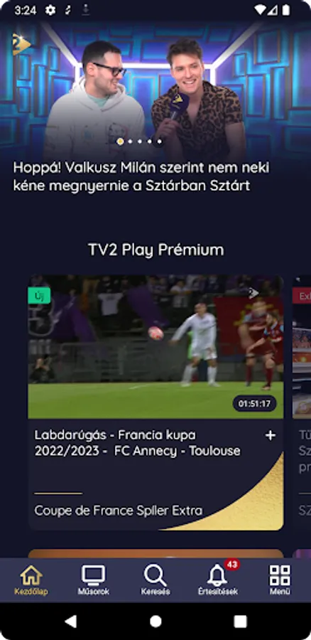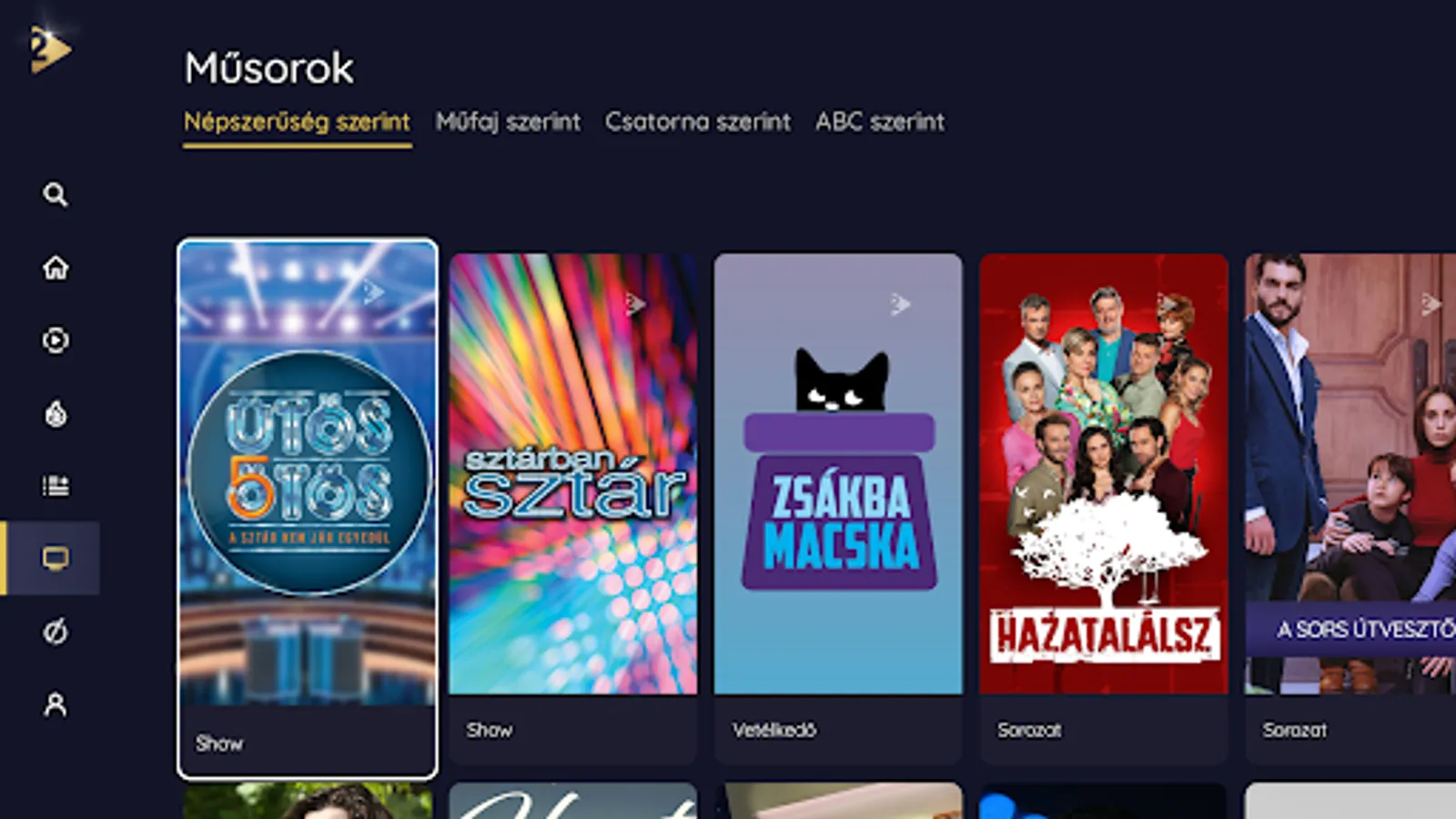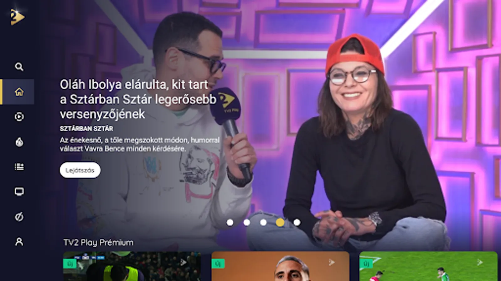 In addition to the main channel, a significant part of the programs in the cable portfolio is also available via TV2 Play. The user can create a customizable profile on the interface. TV2 Play users can once again watch the stunning dances of Dancing with the Stars, I'll be a Star in the Star and I'll be a Star in the Star! its impressive productions, the episodes of the popular series Pepe and Hazatalálsz, the exciting moments of Szerencsekerek and Szákbamacska, the struggle of the pairs of Ázsia Expressz and Párharc.
