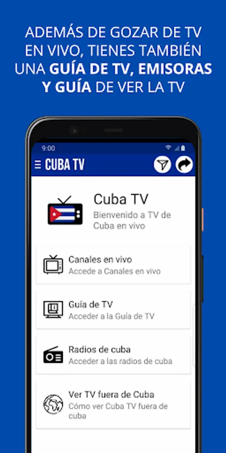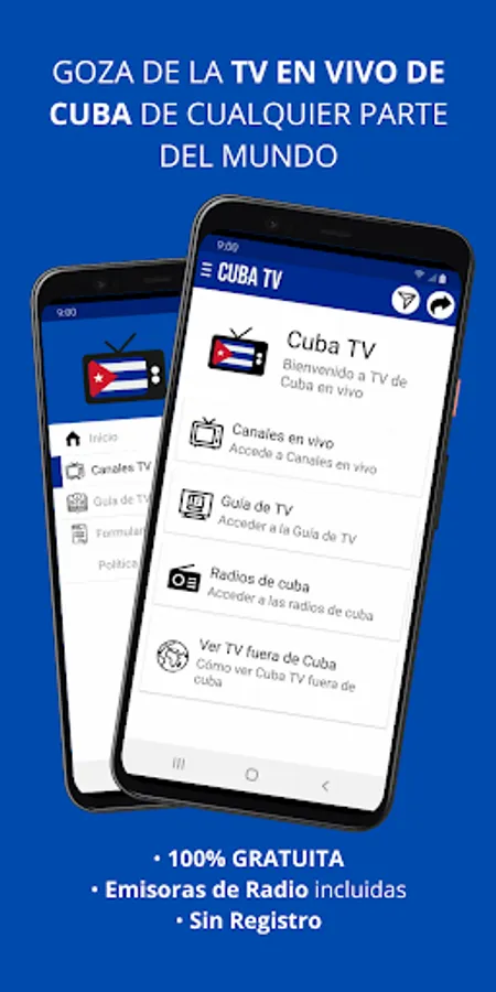 🔹 Access a wide range of live channels for free and without registration. 🆓📡 Don't miss your favorite shows and special events! Check out the interactive TV guide to explore current and upcoming programming. 📅🔍 Also, discover Cuban radio stations to enjoy a diversity of musical genres and informative programs in real time. 🎵📻