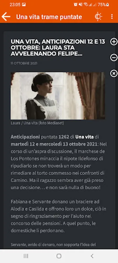 Acacias 38, known in Italy with the title of Una Vita, tells the fascinating stories of four families: De la Serna, Álvarez Hermoso, Hidalgo and Palacios. Among the main characters of the series we remember Manuela Manzano lover of Doctor German De La Serna, husband of Cayetana Solero Ruz. The two lovers tragically disappeared at the end of the first season, following their death: Cayetana and the faithful accomplice Ursula Dicenta. Unfortunately the same fate will befall the cruel instigator of this double murder, Cayetana in fact, the woman will die following the betrayal by Dicenta. It will be Ursula then, eliminated the former ally, to inherit the role of villain of the series.