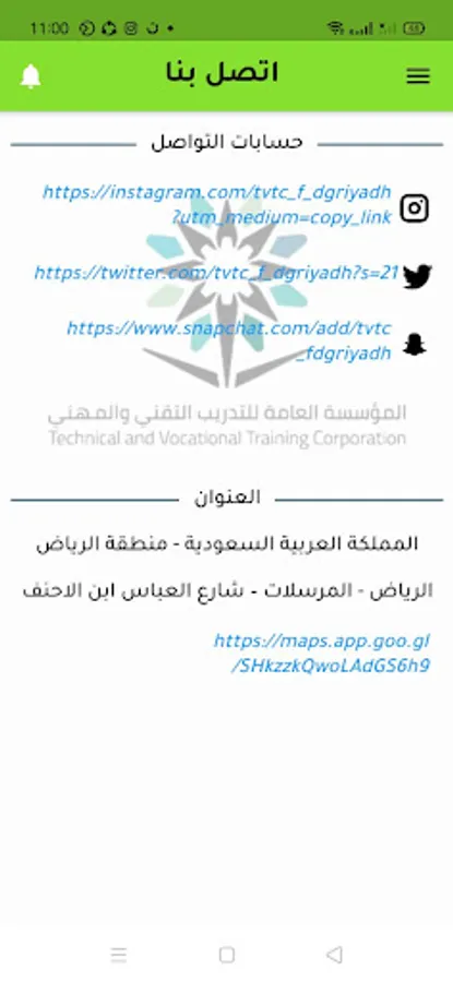 The application provides a detailed explanation of the departments of the General Organization for Technical and Vocational Training, in addition to the conditions for admission and registration