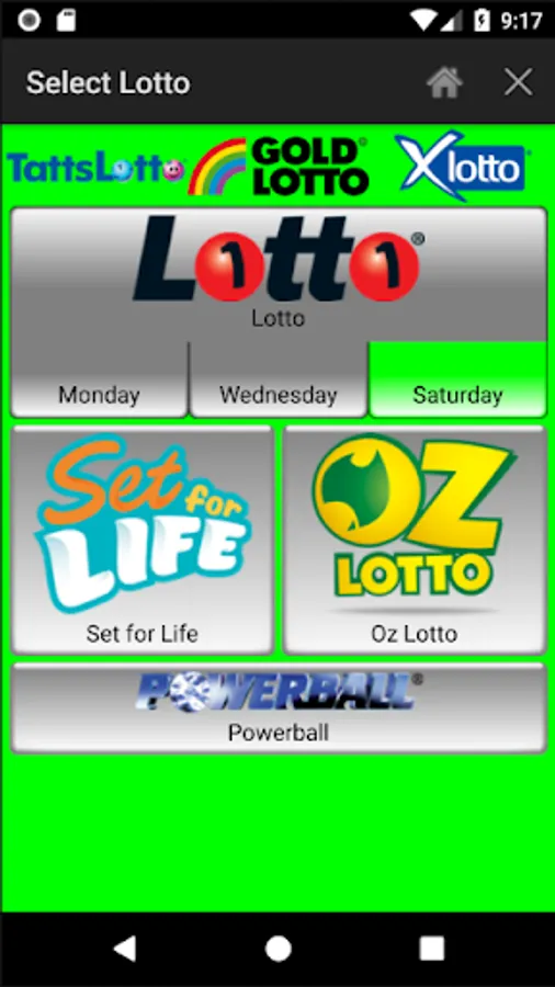 Lotto(TattsLotto, Gold Lotto, X Lotto), Oz Lotto, Powerball, Set for LIFE.