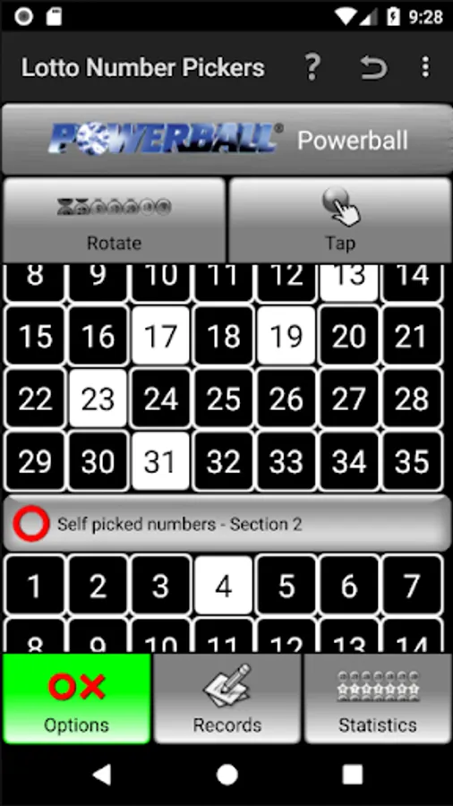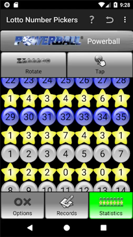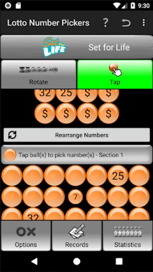 Please tap the "?" icon in the top right corner of the "Lotto Number Pickers" page, referring to HELP documents for each Tab.