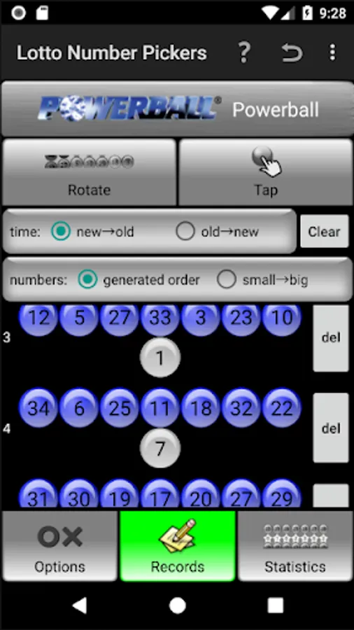 v1.1.4: (1) Rule of 「Powerball」 was updated. (2)Numbers are able to be sorted by generated order or from small to big in the record zone now.(2018/05/02)