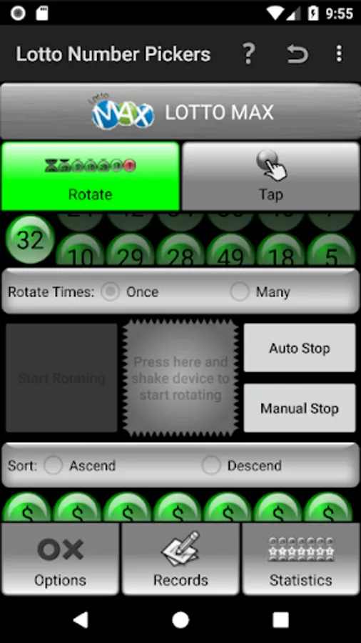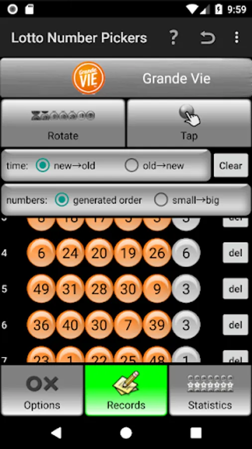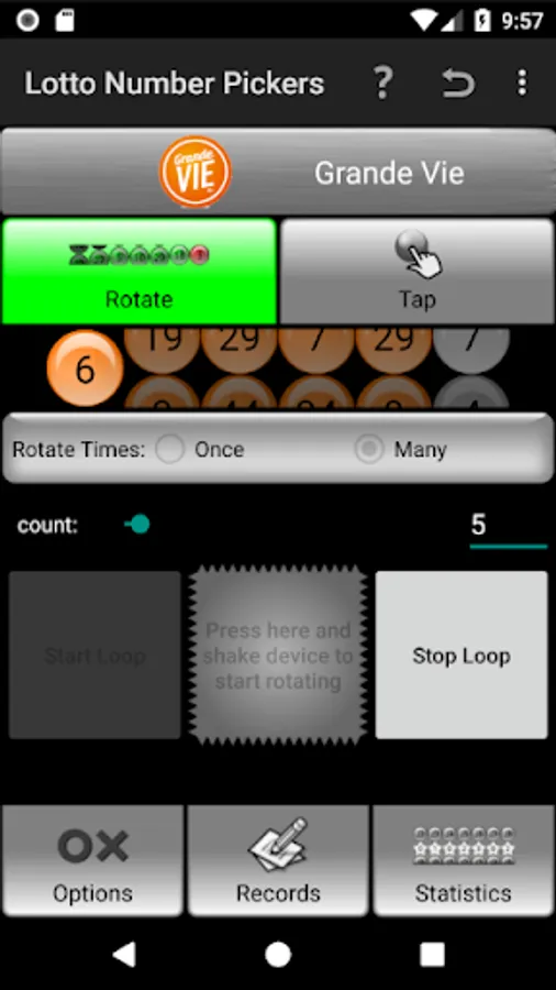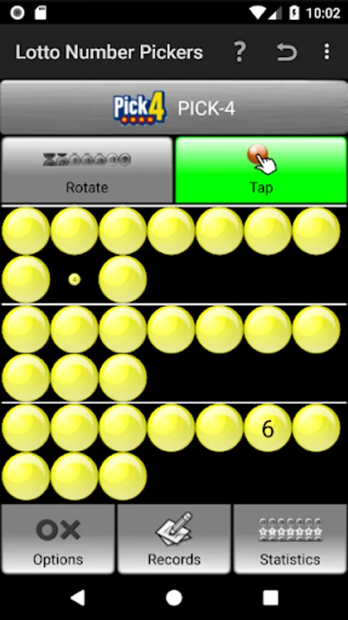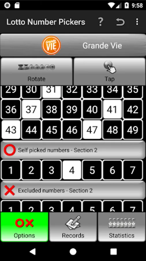 Please tap the "?" icon in the top right corner of the "Lotto Number Pickers" page, referring to HELP documents for each Tab.