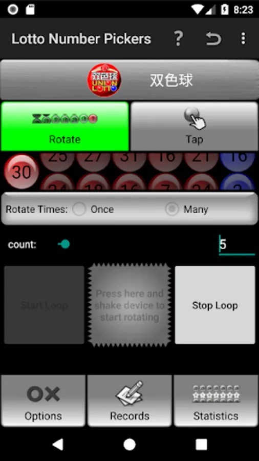 Please tap the "?" icon in the top right corner of the "Lotto Number Pickers" page, referring to HELP documents for each Tab.