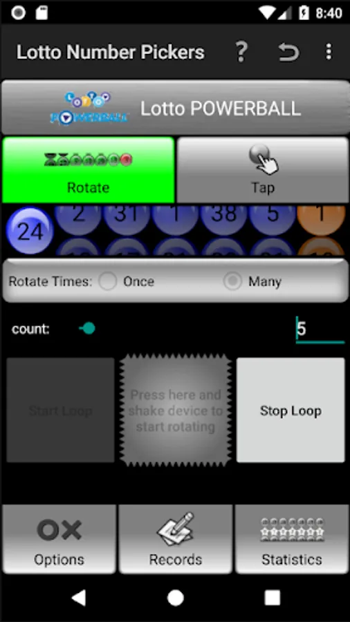 Please tap the "?" icon in the top right corner of the "Lotto Number Pickers" page, referring to HELP documents for each Tab.