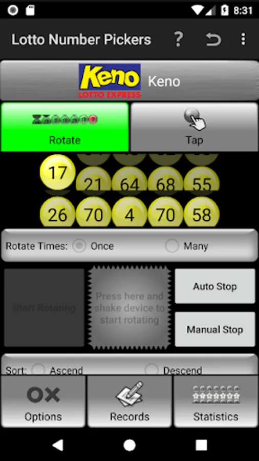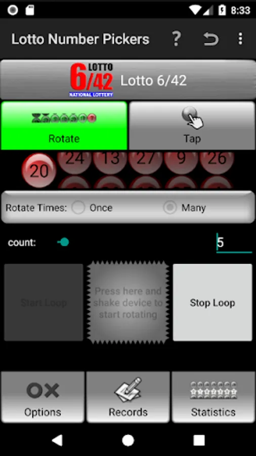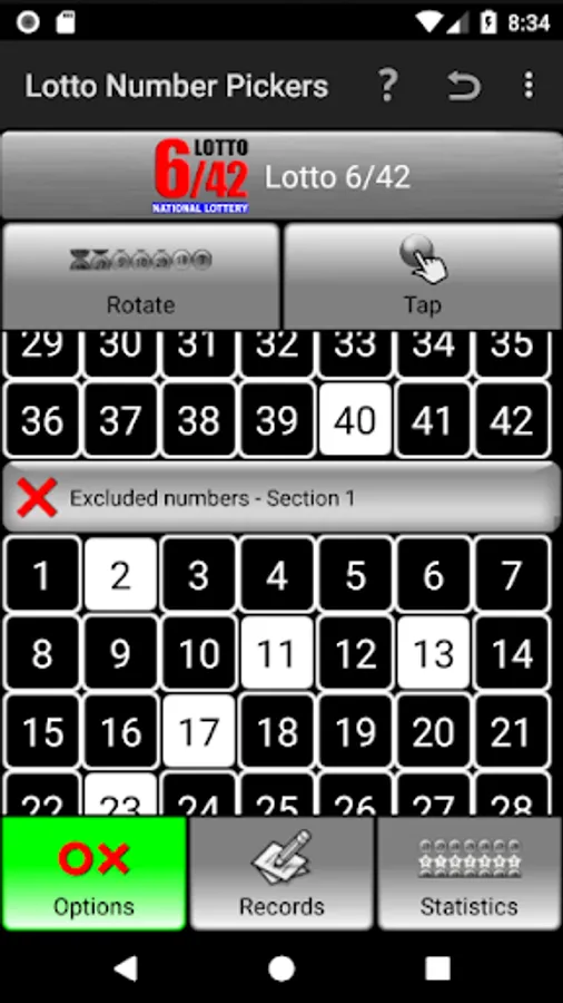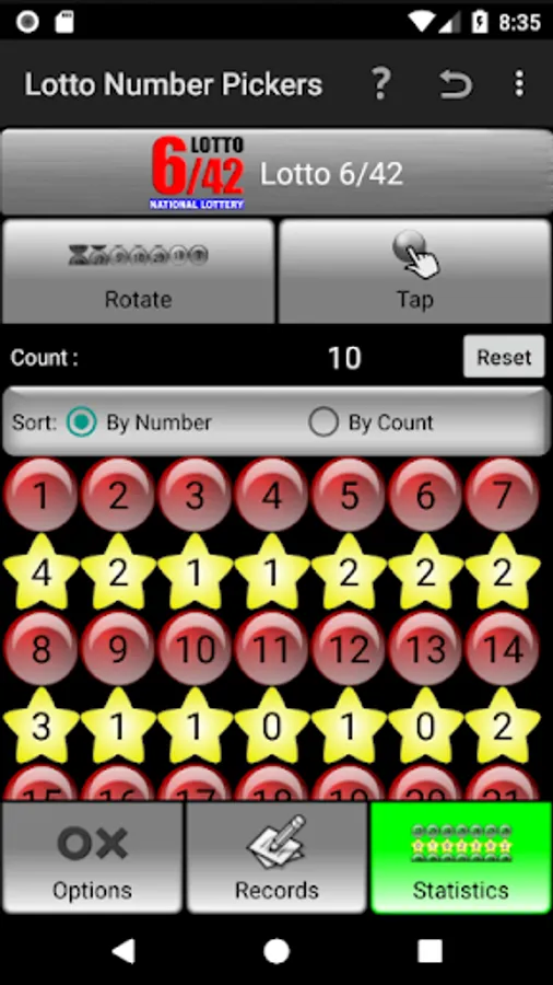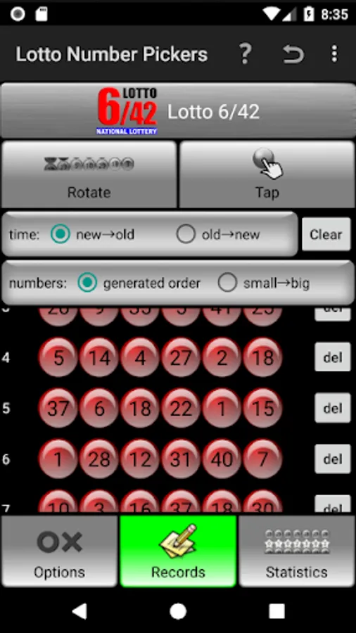 Please tap the "?" icon in the top right corner of the "Lotto Number Pickers" page, referring to HELP documents for each Tab.