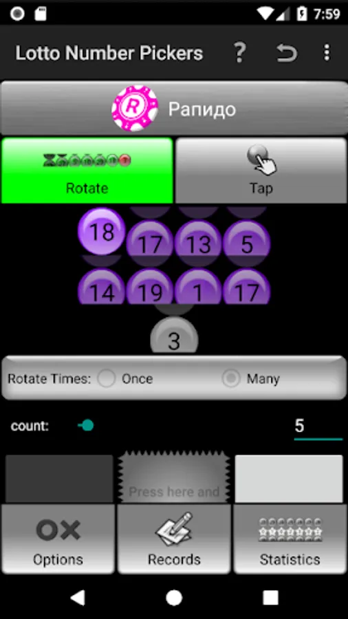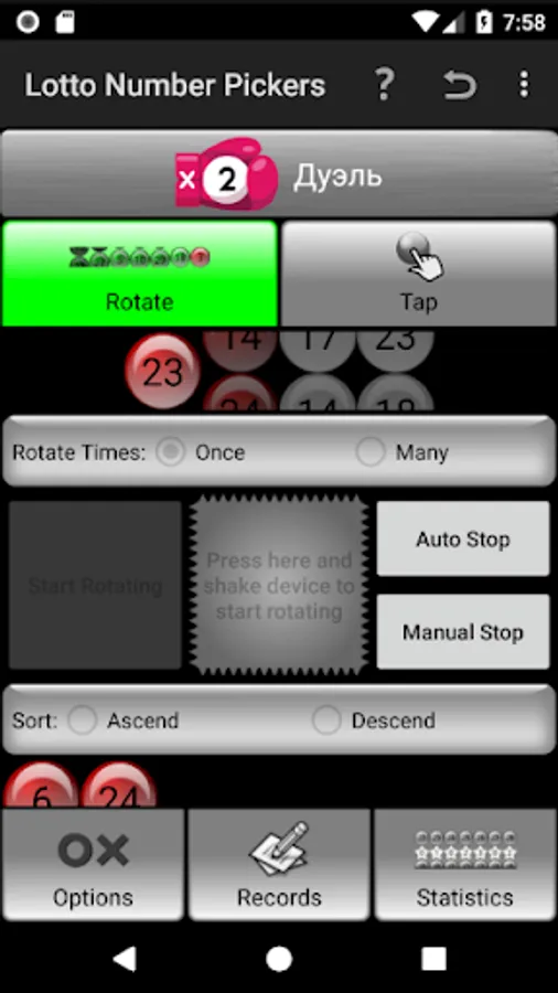 v2.0.0: (1)New function 「pick number(s) by tapping ball(s)」 was added. (2)Draw times of 「Гослото 4 из 20(Gosloto 4 out of 20)」 and 「Дуэль(Duel)」 were updated.(2019/04/23)