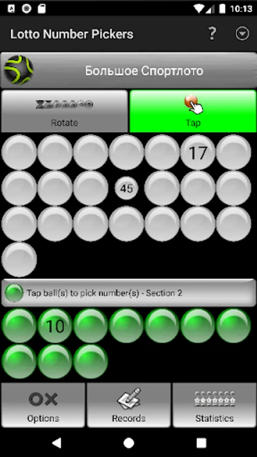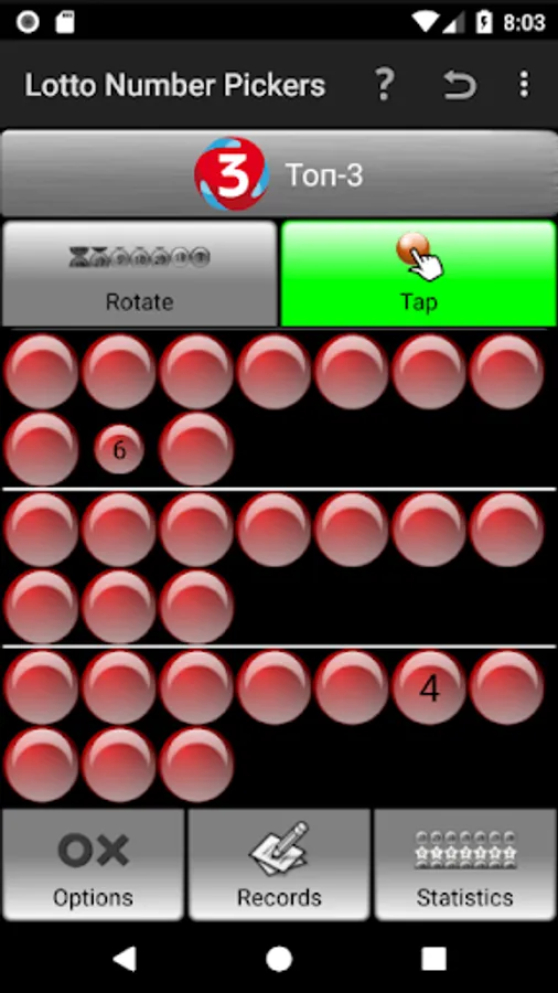 Please tap the "?" icon in the top right corner of the "Lotto Number Pickers" page, referring to HELP documents for each Tab.