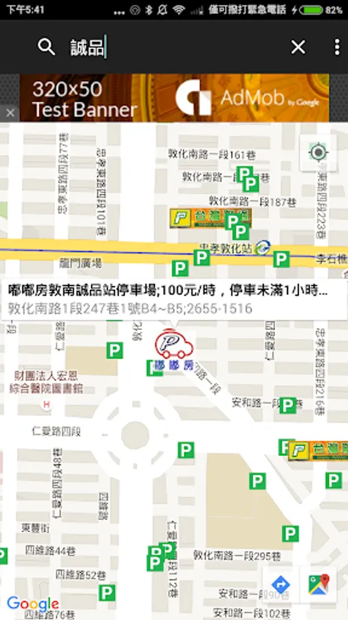 選好停車場後,螢幕右下角會出現兩個圖標,左邊那個是右轉的圖案,右邊的是Google Map的圖案,請點左邊那個右轉的圖標,就會連結到Google Map 的導航功能。