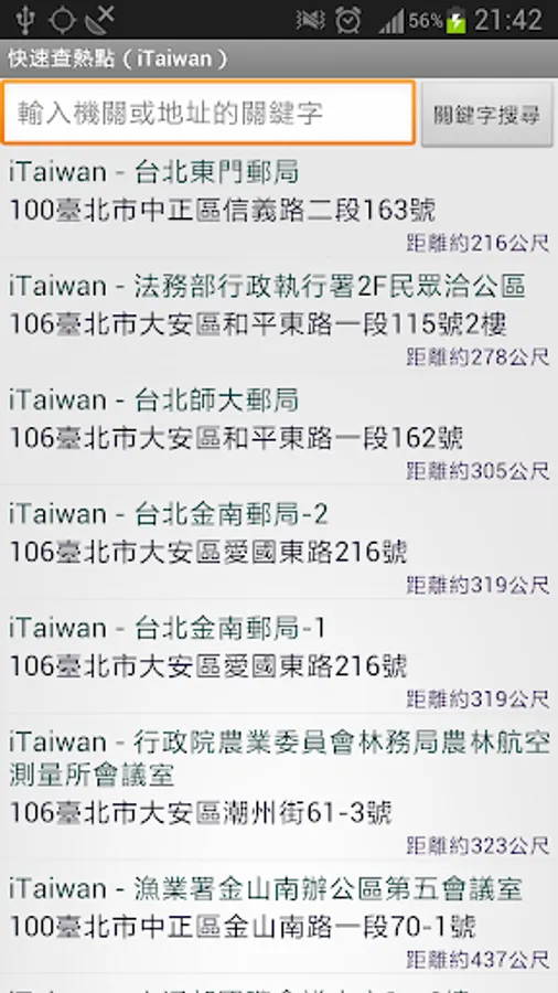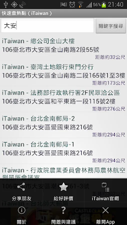 This is a location based service(LBS) app about Wi-Fi hotspots in Taiwan.