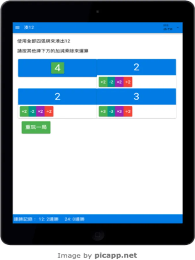 Addition, subtraction, multiplication and division to make 12, is a puzzle game