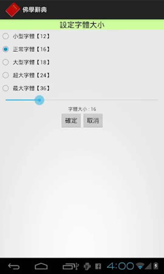 三:可以設定內容字體的大小。