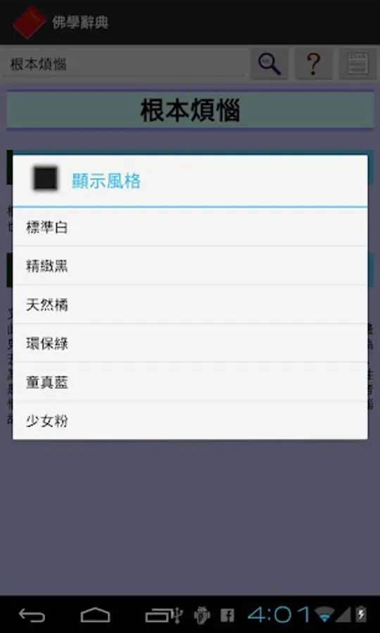 這個佛學辭典軟體是【正體中文版】,慣於閱讀簡體中文的使用者,可以選擇安裝我們發行的另外一個【簡體中文版】的佛學辭典軟體,網址如下:【https://play.google.com/store/apps/details?id=tw.changsen.buddhistdicg】。