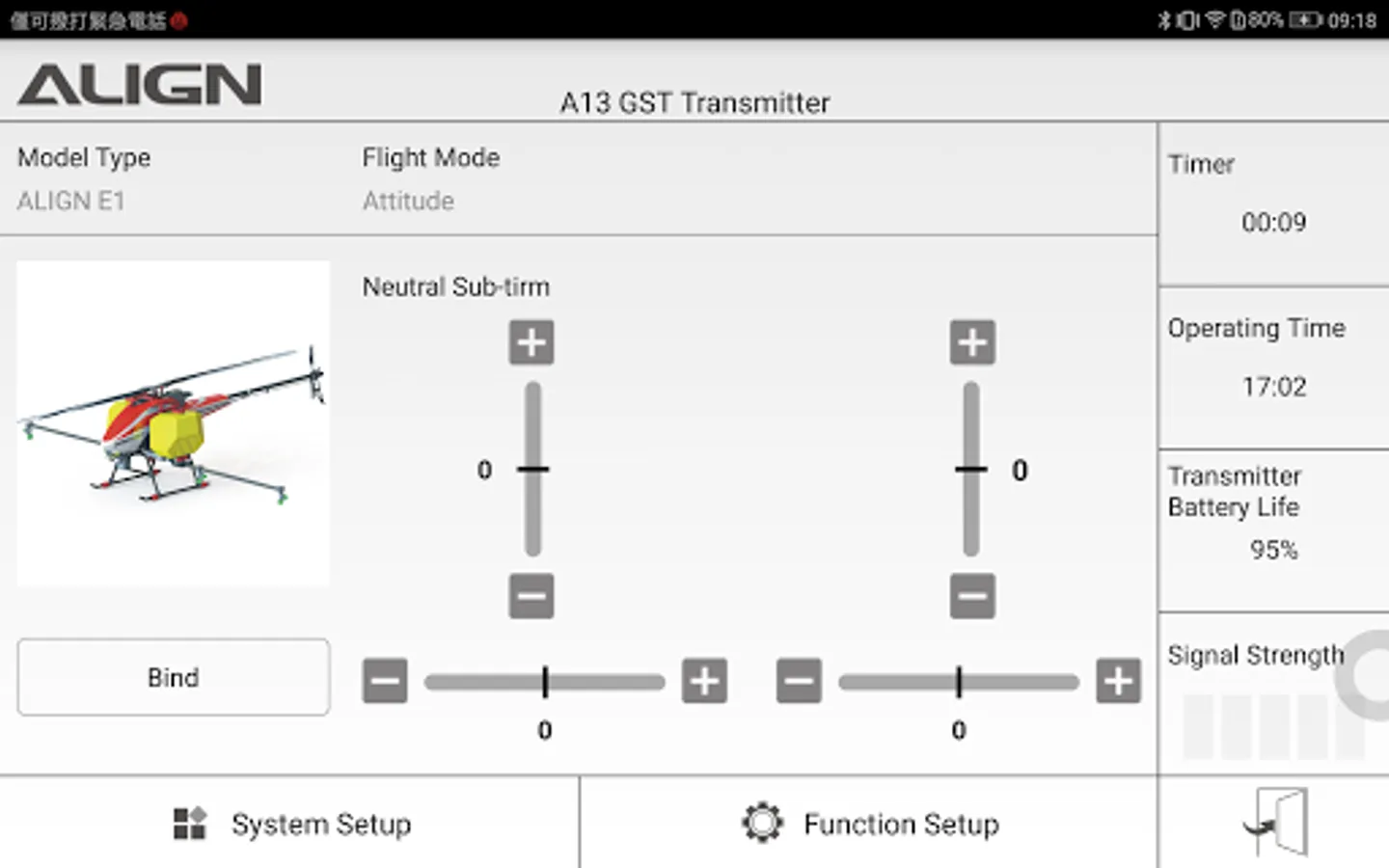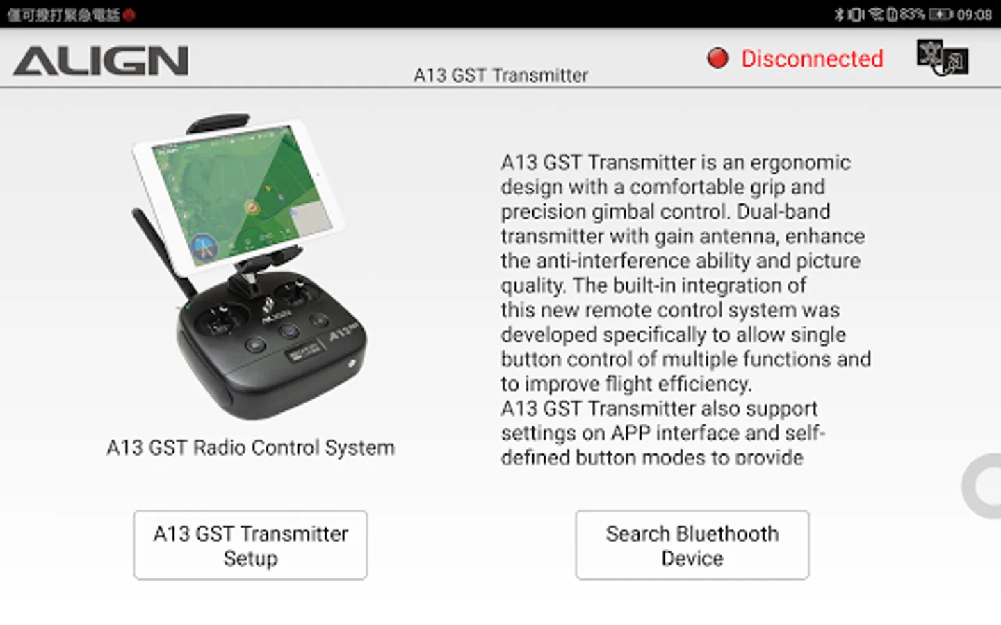 ALIGN A13 GST transmitter and A6B receiver is a transmit/receive set can support upto 14 channels, and with 2.4GHz AFHDS digital proportional computerized R/C system which suitable for R/C aircraft. With AFHDS digital proportional computerized R/C system, anti-interference, low power consumption and high sensitivity receiver.