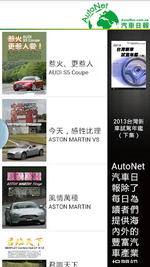 In response to the popularity of smartphones, AutoNet car Daily App "a machine in hand, will be able to easily grasp the car altar latest information, simple style, rich and brilliant photos, and daily real-time updates to the fastest, latest and most popular Automotive News, just use your hands Android phone installation "AutoNet car Daily App, you can easily have!