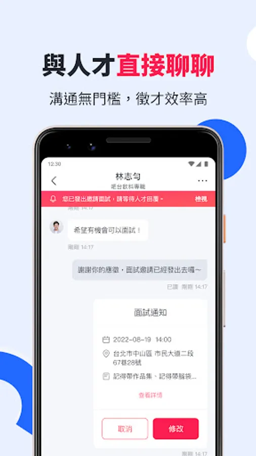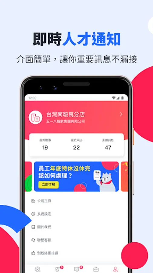 518 Xiongban has officially transformed from a human bank. With simplicity as the core spirit, it has been implemented in every small place of 518 Xiongban, so that you can easily find talents on your mobile phone without staying in front of the computer! Receive the latest application notices in real time to improve the efficiency of recruitment.