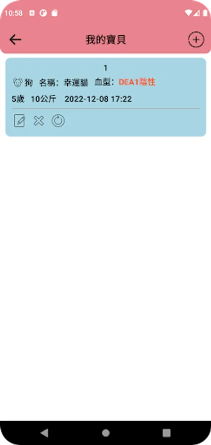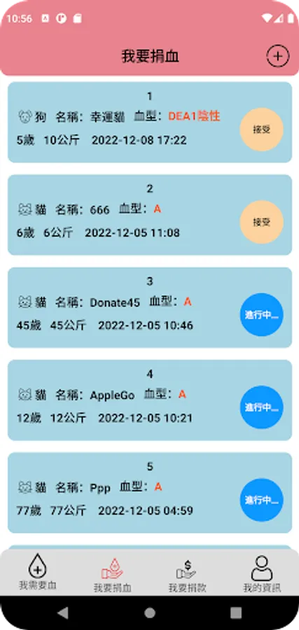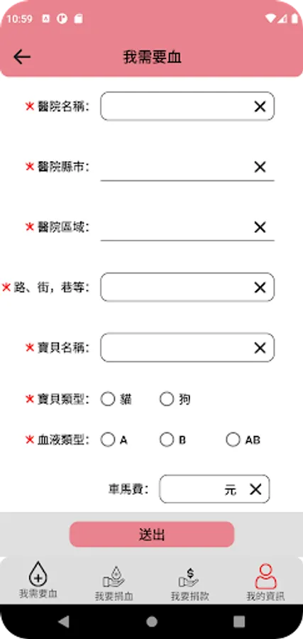 (3) Correction After pressing the "+" button on the "I want to donate blood" page, the edit page for adding "My Pet" appears.