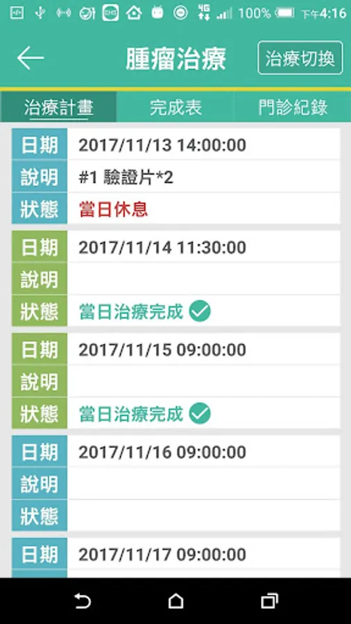 1. Treatment Process: Provide time course content, completion and outpatient planning time for the complete treatment plan