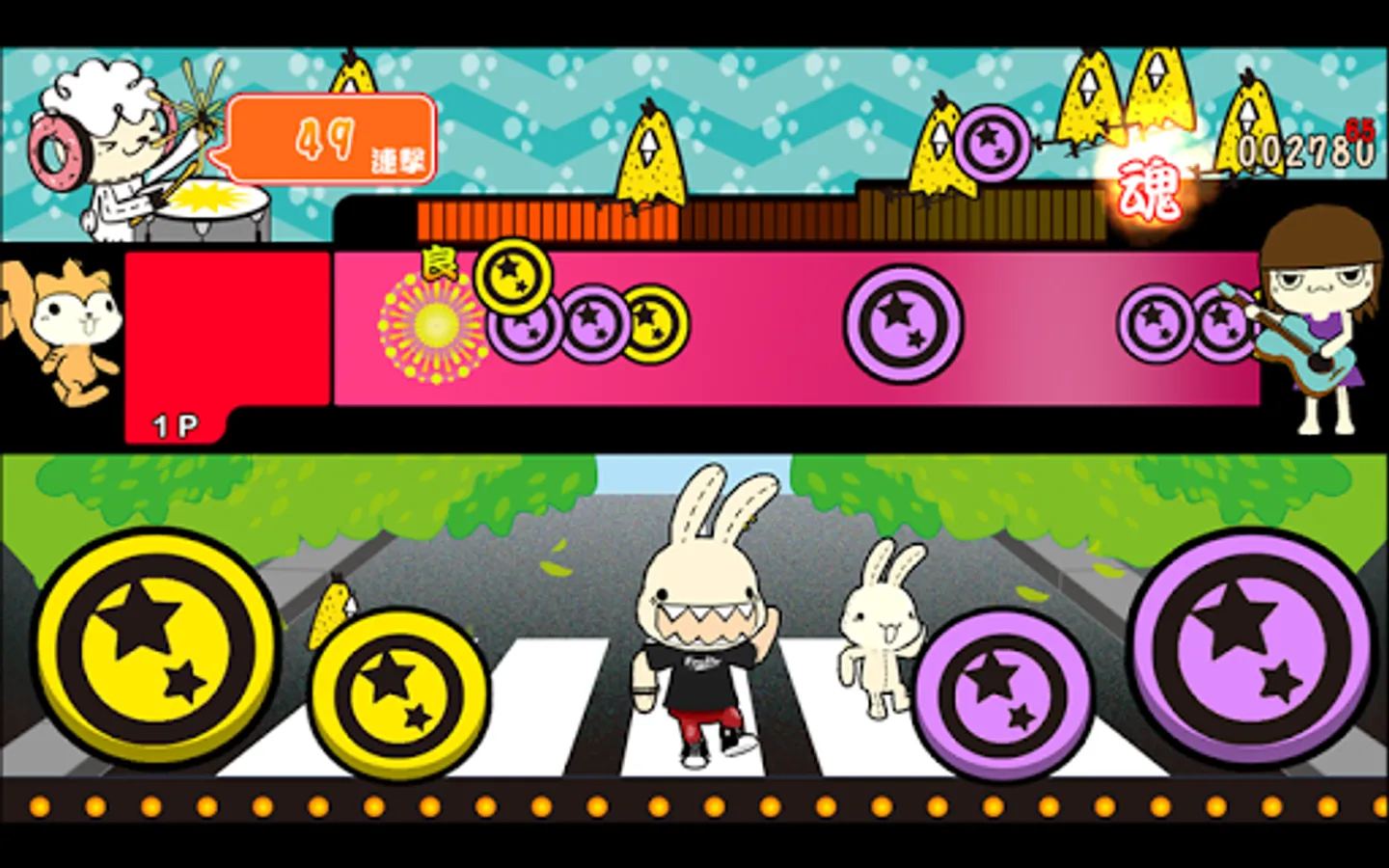 除了可以一邊聽音樂一邊玩遊戲,可愛的Bunny兔與他的夥伴們將化身為搖滾鼓手、爽朗吉他手等不一樣的裝扮陪玩家Dancing Dancing and Dancing!