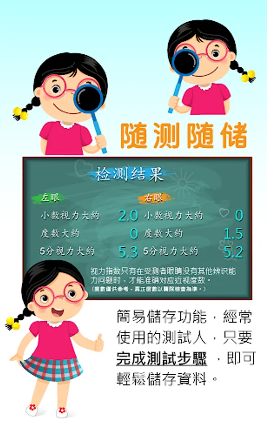 You can self-examine your vision, and the detection icons are randomly generated to prevent children from memorizing the icons and affecting the test results.