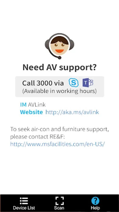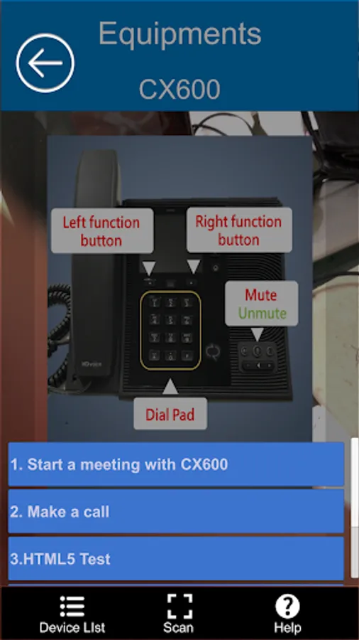 This is an app for you to identify the device / facility of a certain conference room, and provide guidance for the operation via images or videos.