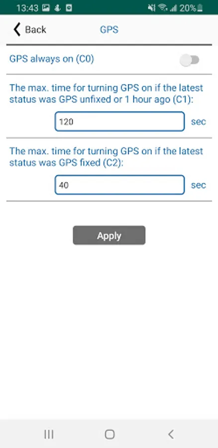 This is a Bluetooth low energy (BLE) application for Globalsat ST-20 Series configuration. By synchronizing with your ST-20, you can check the battery capacity, FW/ APP version and current settings. Also, you can adjust GPS setting to fulfill different user scenarios. With this application and ST-20, we believe you will have a better experience.