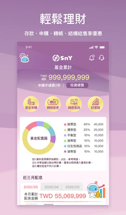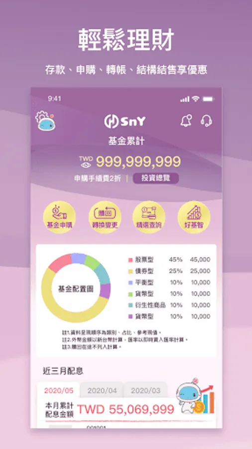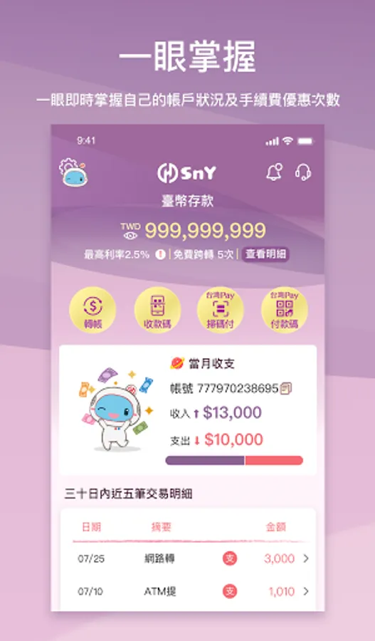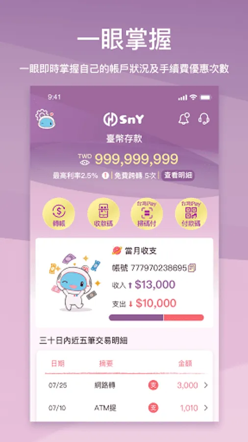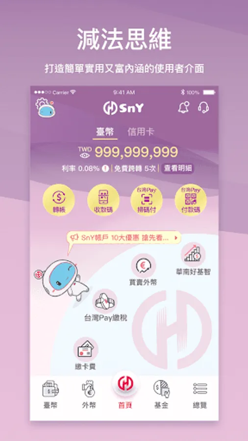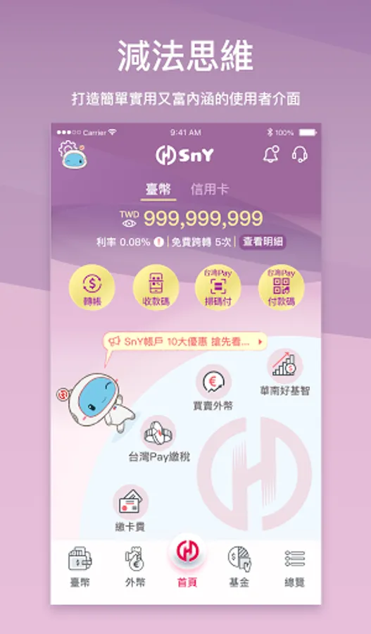 "华南银行_SnY" APP introduces "subtractive thinking" to create a simple, practical and connotative user interface for you, actively filtering noise that may be disturbed, allowing you to instantly grasp your account status and handling fees at a glance From the perspective of users, it focuses on the most frequently used functions such as fast payment, smart consumption, and easy financial management, reducing the inconvenience of use, and effectively shortening the search function time, and creating the closest The operating experience required by the user.