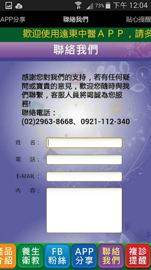 Far clinic was established in the Republic of China on October 88, there are outstanding and professional medical staff, clean and comfortable medical environment, offers the best choice of TCM medical services. Dean, the manager and the medical team to serve the community, hoping caring, warm more people to give you good quality and the environment. Far colleagues TCM self-rising, education, care for more patients, step by step, honest running a business, and sustainable development of new technologies.